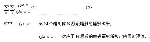 4.4.3 在對(duì)輻射水平進(jìn)行評(píng)價(jià)時(shí),應(yīng)考慮到某一輻射體可能存在的幾種輻射頻率的貢獻(xiàn)以及多個(gè)輻射作的貢獻(xiàn),即應(yīng)滿(mǎn)足式(2):